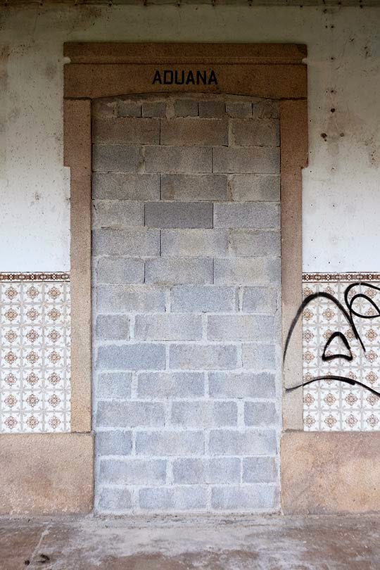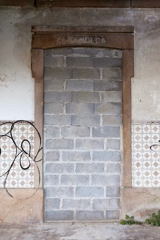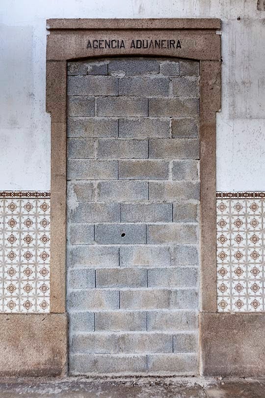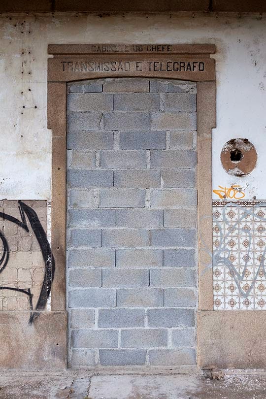 [20-29jul2014_mondego-guimarães-amarela 18] Na manhã seguinte regresso a Barca de Alva, regresso à estação. Palavras escritas sobre as portas de acesso ao edifício falam-nos de um tempo que passou, de uma 'sociedade' ferroviária hoje extinta, mas que permanece na memória de quem viajou de comboio há várias décadas.